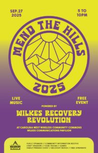 On September 27th, 2025, Wilkes Recovery Revolution, Inc. will host its 10th annual Recovery Rally in the beautiful foothills of North Carolina called “MEND THE HILLS” to raise funds and awareness of addiction. This event is hosted to unite individuals together through the power of music and resources to support communities of recovery where individuals can find hope and life free from addiction.